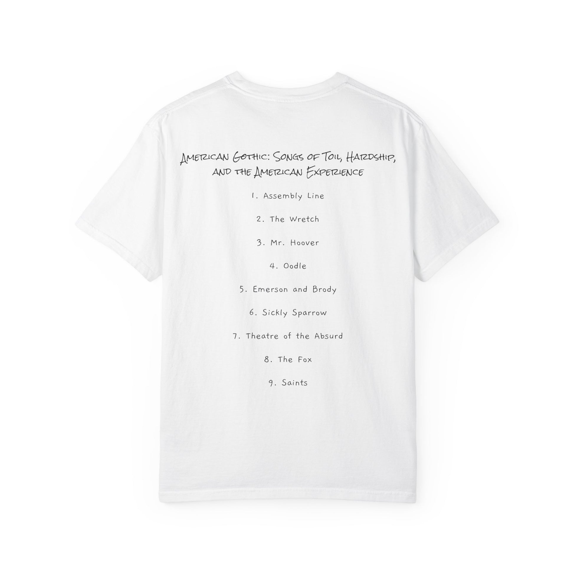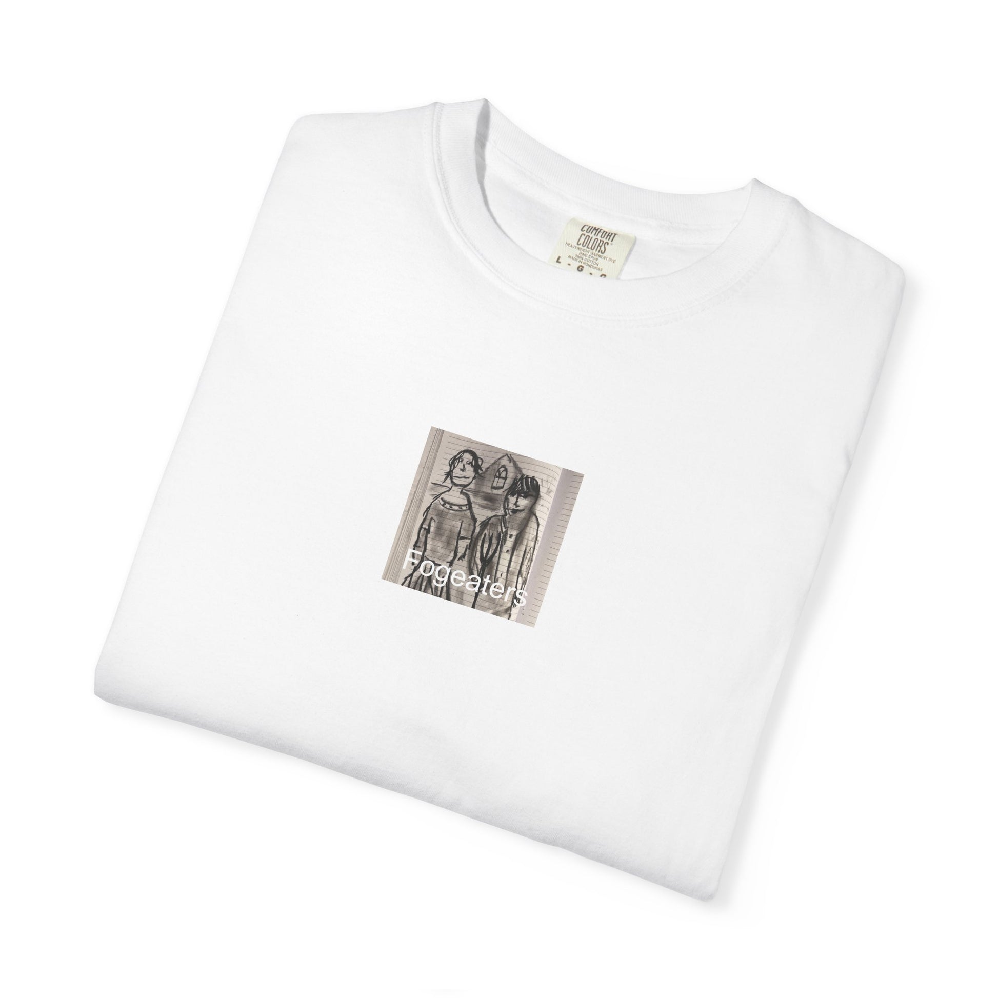 A relaxed, garment-dyed tee with a quietly expressive front artwork and handwritten-style back text. The heavyweight 100% ring-spun cotton feels broken-in from day one thanks to post-construction dyeing, giving the shirt a soft hand and lived-in color. The design reads like a personal note across the back and a small, striking image at the chest — subtle storytelling that sits naturally in everyday life. Wear it with worn denim, layered under a jacket, or tossed over linen shorts for mornings when you want something comfortable that still speaks with character.