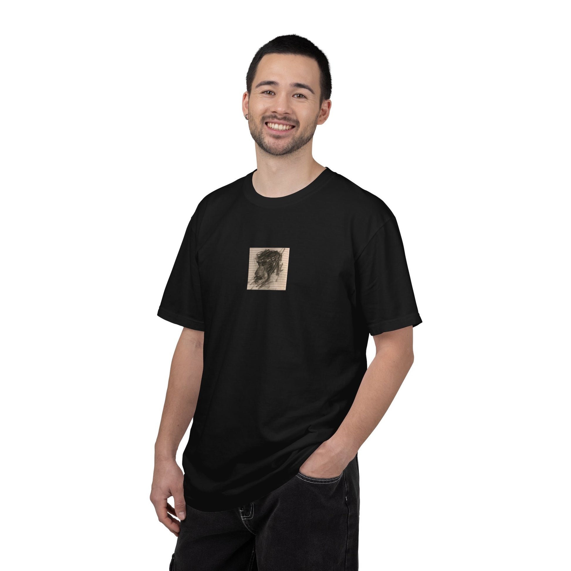 This relaxed, garment-dyed tee carries a quiet, artful presence — the soft, lived-in color and heavyweight cotton feel like a favorite shirt from the first wear. The small, centered artwork on the chest reads like a private sketch pinned to fabric: subtle, slightly vintage, and full of texture. Wear it with worn denim or layered under an open chore coat; it blends into everyday routines while giving a discreet creative edge. It’s the kind of shirt that settles into your rotation and keeps showing personality without shouting. Comfortable for long days, durable through washes, and available in many colors to match your mood.